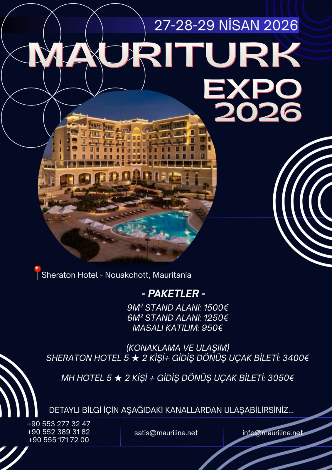 Ticaret Bakanlığı’ndan alınan bir yazıda, Nuakşot Ticaret Müşavirliği’nden aldıkları yazıya atfen, 27-29 Nisan 2026 tarihleri arasında Moritanya'nın başkenti Nuakşot'taki Sheraton Oteli'nde ilk kez olan Moritanya-Türkiye Ticaret Fuarı'nın (MAURITURK EXPO) gerçekleştirileceği ifade edilmekte ve söz konusu fuarın iki ülke iş insanları arasında ticari ortaklıkların tesis edilmesi açısından seçkin bir fırsat sunduğu; fuar kapsamında çeşitli ürünlerin sergileneceği ve iş insanları arasında ikili iş görüşmeleri düzenlenmesinin planlandığı; bunun yanı sıra fuarın, Türk imalatçılarının Moritanya ve Batı Afrika pazarlarına doğrudan erişimine imkân sağlayacağı belirtilmektedir.